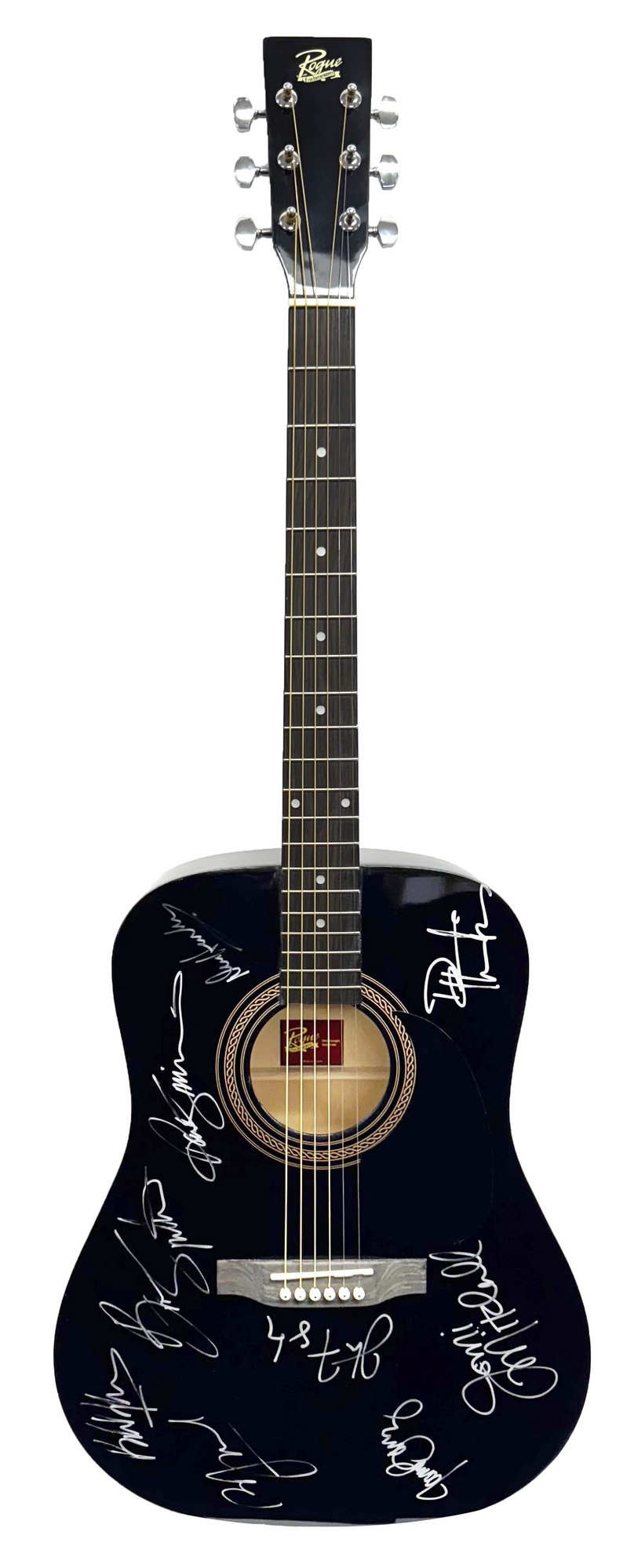 This is a rare opportunity to own an acoustic guitar autographed by 9 legendary singer/songwriters! Bob Dylan, Paul Simon, Bruce Springsteen, Billy Joel, Don Henley, John Fogerty, Joni Mitchell, Joan Baez & Dave Matthews.