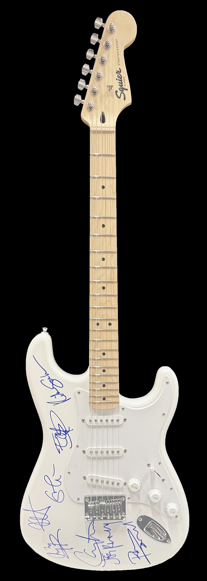 Don't miss this chance to own an electric guitar signed by 8 exciting guitar heros! Eric Clapton (Cream), Jimmy Page (Led Zeppelin), Carlos Santana (Santana), Pete Townshend (The Who), The Edge (U2), Joe Perry (Aerosmith), Richie Sambora (Bon Jovi) & Kirk Hammett (Metallica)
